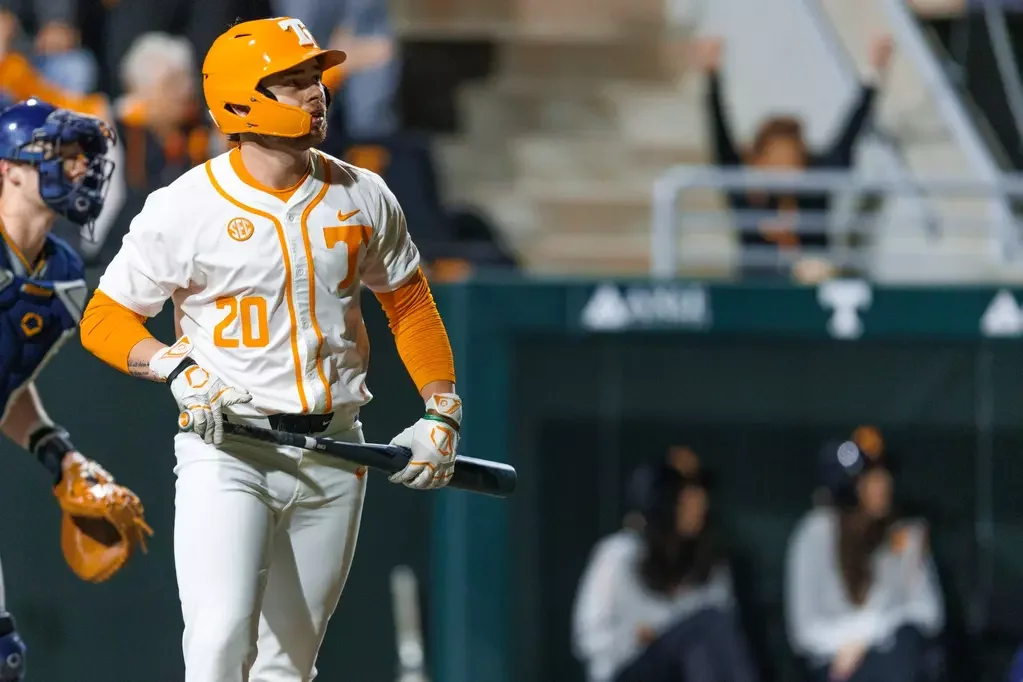 Tennessee enters the weekend at 6-2, but the record isn’t telling the full story. The Vols let a winnable series slip away against Kent State, taking Friday’s opener 4-3 on a Tyler Myatt pinch-hit walk-off homer before falling 2-1 on Saturday and 9-5 on Sunday. The defining theme of that weekend was hit-by-pitches. Tennessee pitchers plunked six Golden Flashes on Friday, tying a program record, and added four more on Sunday, repeatedly giving Kent State free baserunners in tight spots.